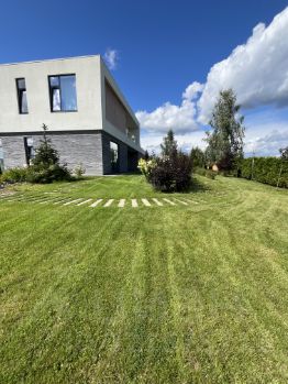 Новорижское шоссе. Стильный новый дом под ключ. Кирпичный коттедж с 4 спальнями общей площадью 350 м2. Расположен на благоустроенном участке 25 соток в большом приватном поселке в окружении леса и реки. В поселке большие участки, широкие дорогие, дома находятся на удалении друг от друга, нет и не будет плотной застройки. Год постройки дома - 2023.