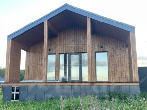 Сваи фундамента и каркасные стены обеспечивают устойчивость и долговечность здания, а металлическая крыша создает стильный внешний вид.