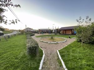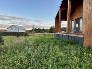 Участок оформлен как луг с газоном, что значительно упрощает уход и позволяет вам наслаждаться природой.