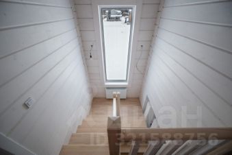 Потолок в кухонной зоне, спальне 1-го этажа, санузлах - натяжной матовый белый. Потолок в спальнях 2-го этажа - имитация бруса с окраской маслом OSMO;