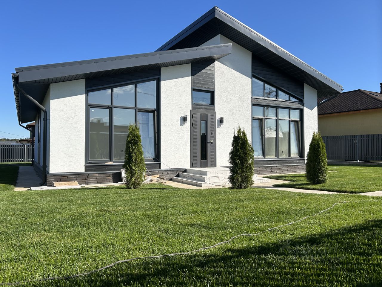 Продаю Дом - 120 кв. м, с ПОЛНОЙ ОТДЕЛКОЙ (Заезжай и живи), с участком 8 соток. Электричество - 15 Квт. ГАЗ. Стены - газоблок (Могилев), толщина стен - 400 мм. Высокие потолки. Три спальные комнаты. Мастер-спальня с отдельным санузлом и гардеробной. Зал, кухня, кладовая, гардеробная и веранда, Два санузла.