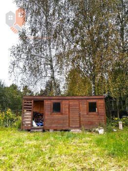 Постройки: в углу небольшая банька, которую можно использовать как летний домик или для проживания на время строительства. Есть сарай для хранения инвентаря.