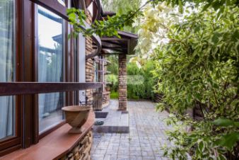 Дом имеет два выхода - парадный и через гараж. Свой выход из участка в парк.