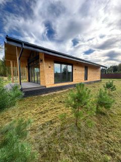 В отличие от других домов в стиле Барнхаус, этот дом построен из современного фибропенобетона толщиной 400 мм — прочного, теплоизоляционного материала, негорючего, не впитывающего влагу и обладающего высокими звукоизолирующими и звукопоглощающими свойствами.