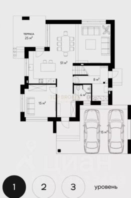 В доме 3 уровня, эксплуатируемая кровля, террасы и панорамное остекление.