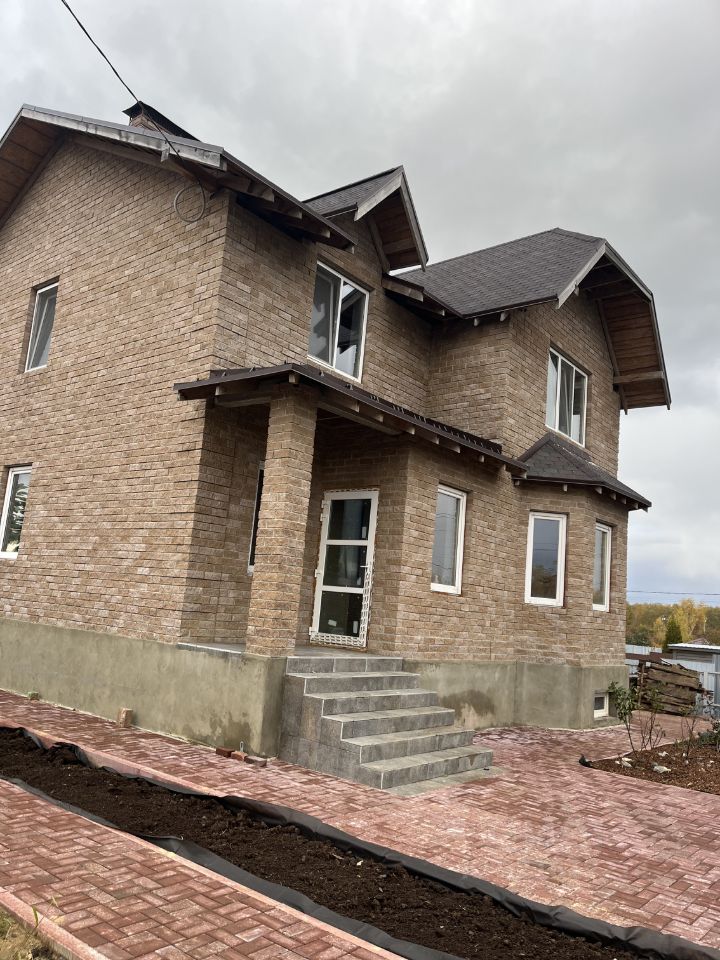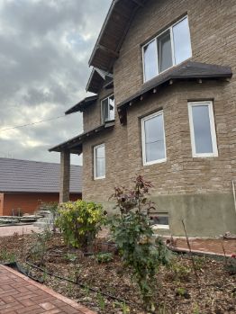 На участке 11.37 соток расположен красивый 2-х этажный дом с балконом на втором этаже(смотрит на лес) с полноценным цокольным этажом из облицовочного "Рваного полуторного кирпича фирмы ROSSER". На первом этаже высота потолков 3,5 метра, на втором этаже 3,0 метра, на минус первый этаж высота потолков 3,5 метра, присутствуют по периметру окна фирмы "Рехау". Стены и перегородки выложены из керамзитобетонных теплых блоков, а также красного керамического кирпича. Монолитно-бетонная лестница идет с минус первого и до второго этажа. Тажке есть шахта из кирпича специально построенная для камина. Перекрытия в доме минус первый и первый этаж пустотные плиты перекрытий производства"Рязанского завода ЖБИ". Окна и пластиковая дверь установлены фирмы"РЕХАУ". Входная дверь с терморазрывом фирмы "Buldoors". Лестница и крыльцо в дом облицована дорогой итальянской 2х см керамогранитной плиткой. Также керамогранитов облицован балкон, выходит на сторону бани. Куплены двери на весь дом. В доме проведено временное освещение для проведения отделочных работ в доме.