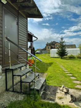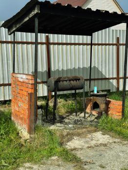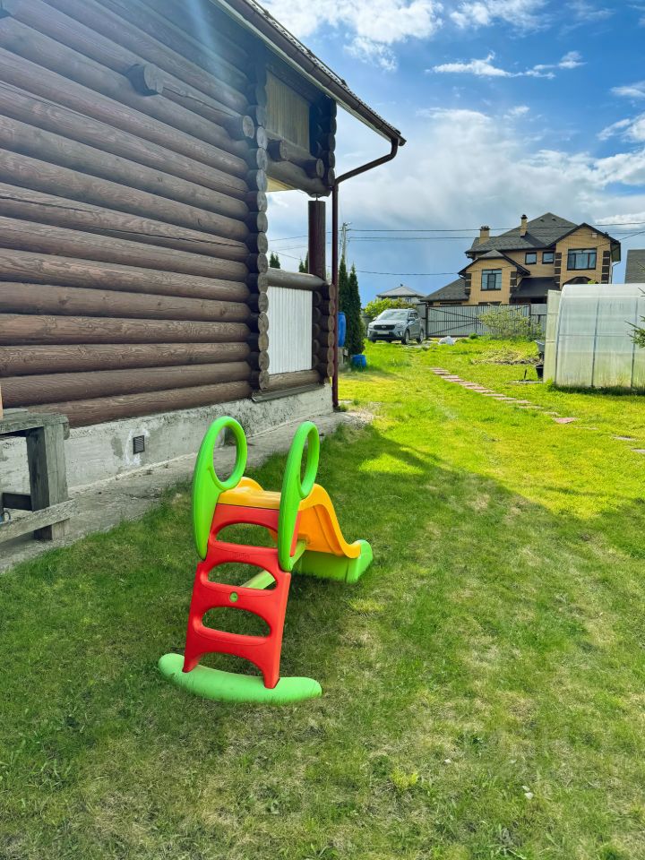 На участке 12,5 соток растут елки, сирень, плодоносящие фруктовые деревья (яблони, груши), кусты крыжовника, малины, ежевики, жимолости. Также на территории собраны две большие новые теплицы, есть колодец, зона для отдыха (столик со скамейками, мангал). На газоне перед домом для детей летом выставляли надувной бассейн. Есть вольер для собаки.