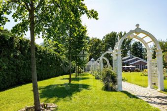 основой дом 445 кв.м + открытая терраса 36 кв.м с отделкой под ключ, французская и итальянская мебель;