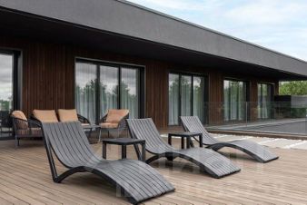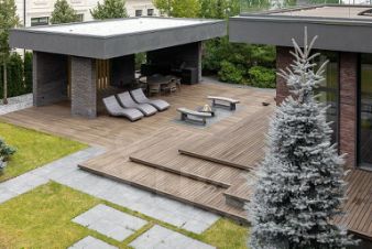 - Уличная кухня оснащена качественной техникой Bosch и грилем Napoleon, позволяя наслаждаться приготовлением пищи на свежем воздухе.