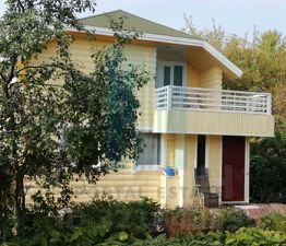 70 кв.м. Стены каркасно-обшивные, крыша мягкая кровля, внешняя отделка блокхаус, фундамент сваи, сверху ж/б плита толщиной 25 см. В доме три спальни, кухня, балкон и один санузел.