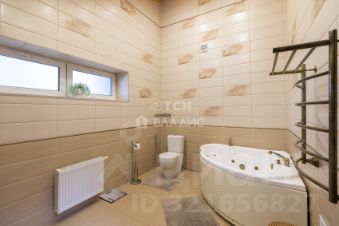Второй этаж: лестница с кованными перилами, витражное окно, три спальни, две с выходом на балкон, просторная гардеробная 11 метров (встроенная система хранения), кабинет, санузел совмещенный с финской ванной с гидромассажем, теплый пол + батареи.