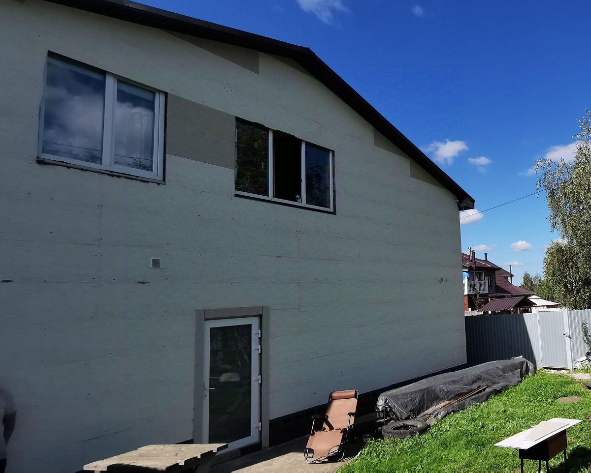 Таунхаус высотой в два этажа, площадью 123,8 кв.м, построен в 2013 году. Стены выполнены из пеноблоков с армированием. Пластиковые окна с двойным остеклением. Внешняя отделка фасада здания - из фиброцементных панелей. Кровля дома двускатная, покрыта ондулином. Фундамент монолитная плита. По периметру дома имеется бетонная отмостка с уклоном в направлении от здания.