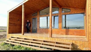 Размер дома 14,6 * 8,2 м. Высота потолка - от 4.5 м до 3 м. Дом большой и кажется еще больше за счет панорамных окон. Много света. В строительстве использованы дорогие и качественные строительные материалы. Технология проверена - утепление 200 см по всему дому и перекрытиях. Электричество проведено под землей 15 кВт ( 3 фазы), электрический котел. Канализация, отопление, водоснабжение проведены в дом. Имеется терраса 21м2.