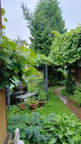 Часть участка посадки и теплица, половина трава для отдыха, тенниса, гамака, диван качалки итд. Круглогодичный подъезд. рядом город Истра.