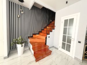 •Стильная лестница из лиственницы с перилами