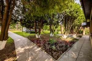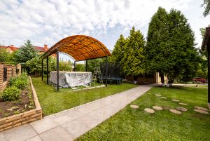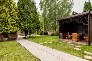 • Большой (24 сотки) ухоженный участок, на котором есть и зона для отдыха (место под навесом для летнего бассейна), беседка, лавочки и (для любящих возиться в огороде) огород, плодовые деревья. Есть даже погреб для хранения даров природы.