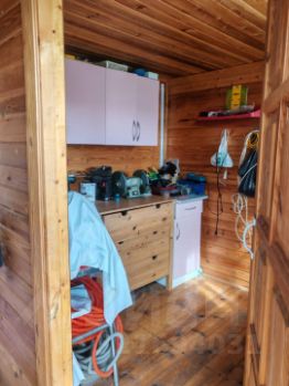 - все коммуникации проведены в дом и функционируют: электричество — 10 квт, Вода из колодца заведена в дом, канализация — переливной септик (4 кольца), отопление — твердотопливный котел.