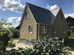 Дом с мансардой и верандой по проекту ООО "ЗОДЧИЙ" 2002г постройки на ж/б ленточном фундаменте, брус 100Х100мм утеплен и обшит сайдинг-панелями красивого кремового цвета.