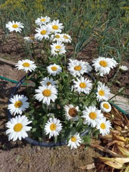 Дом окружают пионы, флоксы, розы, лилии, ромашки и много других цветов и декоративных кустарников.