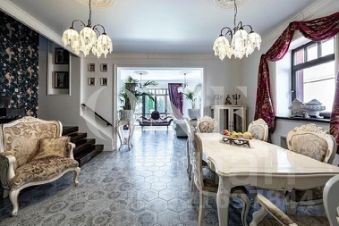 Стены выполнены частично под покраску и частично оклеены коллекционные обои. В зале оборудован дровяной камин с английской топкой. Зона кухни укомплектована бытовой техникой ( индукционная плита, духовой шкаф, п/м машина, холодильник, СВЧ. На лестничном холле и входной группе дома работаю датчики движения, включающие освещение.