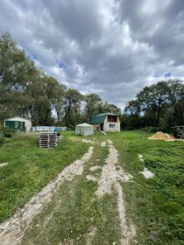 Участок огорожен и находится на краю, с одной стороны соседи. На территории есть хозблок и металлический гараж. Подъезд круглогодичный.