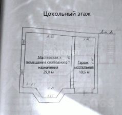 Цокольный этаж: гараж на 1 автомобиль с ремонтной ямой 18,6 кв.м., котельная, мастерская/ помещение свободного назначения 29,8 кв.м. + комната для хранения маринованных деликатесов и зимних припасов 12 кв.м.; h - 2,5 м (потолки);