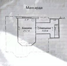 Мансардный этаж: свободная комната 25 кв.м., подсобное помещение 12,6 кв.м.