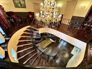 Обширное входное пространство (холл) с винтовой парадной лестницей, мастер-спальня с санузлом, гардеробной и балконом, и еще три гостевых спальни, библиотека, санузел.