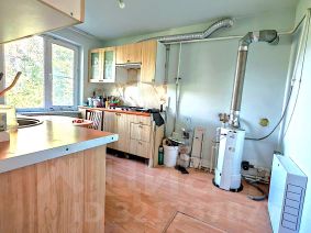 Индивидуальный Газовый котел в каждой части домовладения - их три части (магистральный газ) - отопление газовое + разводка по полу теплых полов (индивидуальное в нашей части), туалет и душ в нашей части домовладения свои (у других частей свои), водопровод - скважина на весь дом, канализация.