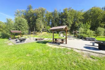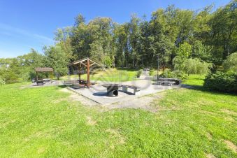 Разноуровневый участок огорожен забором по периметру. Вход на территорию с двух сторон.
