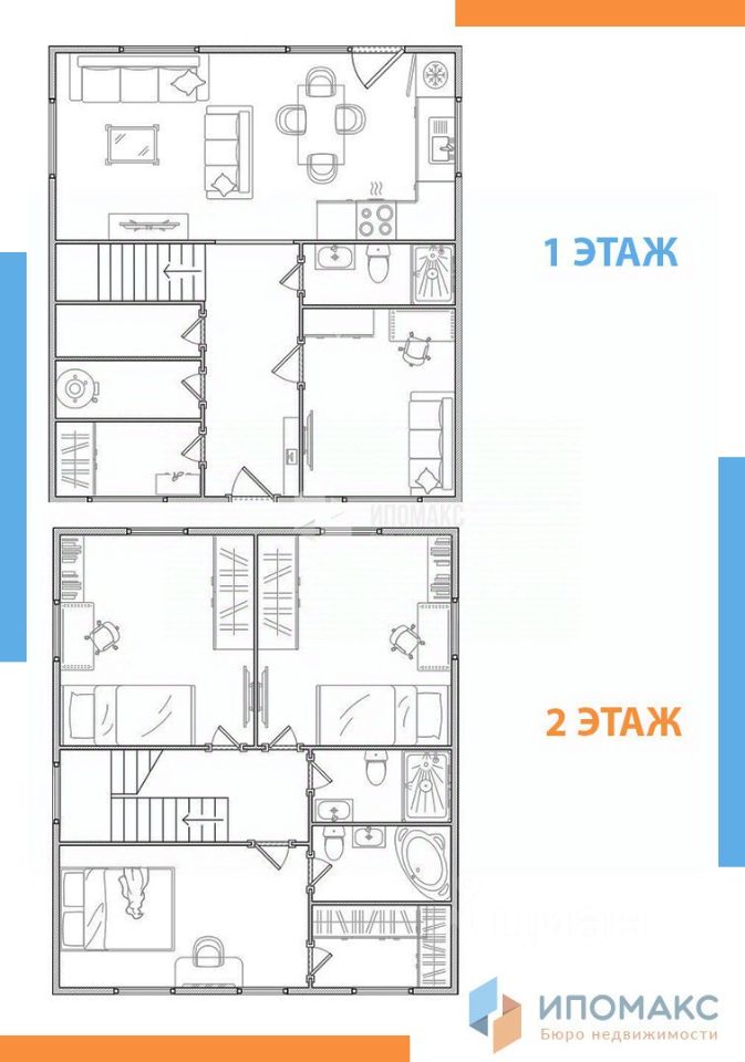 2 этаж: две спальни, сан. узел и мастер-спальня с санузлом и гардеробной.