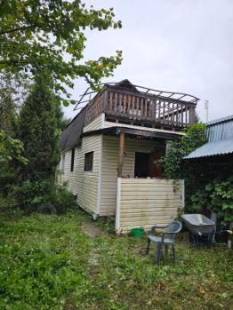 На территории участка расположен дом двухэтажный, построен в конце 90-х. Обшит виниловой вагонкой, крыша - ондулин. Строение пригодно для временного проживания, но требует ремонта.