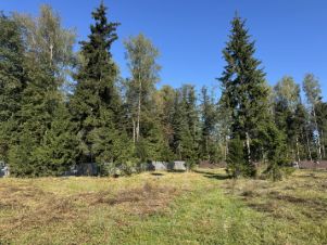 Участок ровный и сухой, частично огорожен, с двух сторон окружен хвойным лесом.