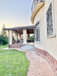 1-этаж: кухня-гостиная с камином, кабинет, спальня, постирочная, 2 с/у, сауна, гараж на 2 м/м, бойлерная, квартира студия с отдельным входом для персонала.