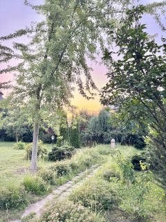 - Ухоженный сад с плодово-ягодными деревьями и цветниками