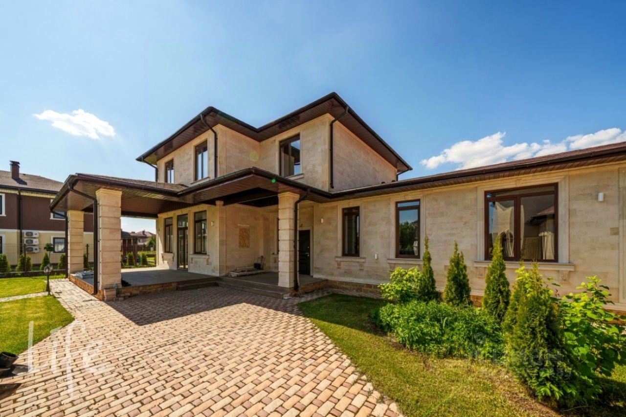 Коттеджный поселок "Новорижский". Новый дом полностью под ключ, без мебели. Конструктив: монолитный фундамент и перекрытия, стены — газобетонный блок, мягкая кровля, фасад облицован дагестанским камнем.