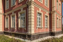 Дом построен из полнотелого кирпича, имеет внушительную толщину стен. Также во всех комнатах сделана лепнина во французском стиле и мраморные подоконники.