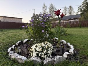 На придомовой территории возделан огород с грядками и теплицей, туи, цветы, кусты смородины, малины, несколько яблонь.