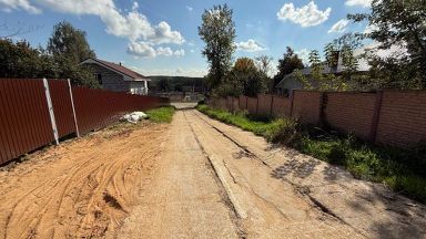 Площадь участка составляет 6 соток, статус ИЖС. Участок сухой, видовой, расположен на возвышенности. Участок угловой, граничит лишь с двумя соседями, правильной прямоугольной формы, огорожен забором по всему периметру, зеленый, на участке растут плодоносящие яблони, клён, лиственные деревья и кустовые растения. К участку удобный круглогодичный подъезд, имеются ворота для въезда на участок.