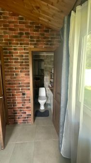 Баня полностью функционирует с чистовой отделкой. В бане: туалет, душ, ведро для холодной воды, комната отдых и сама парная.