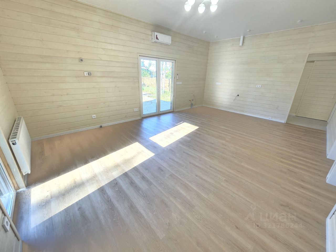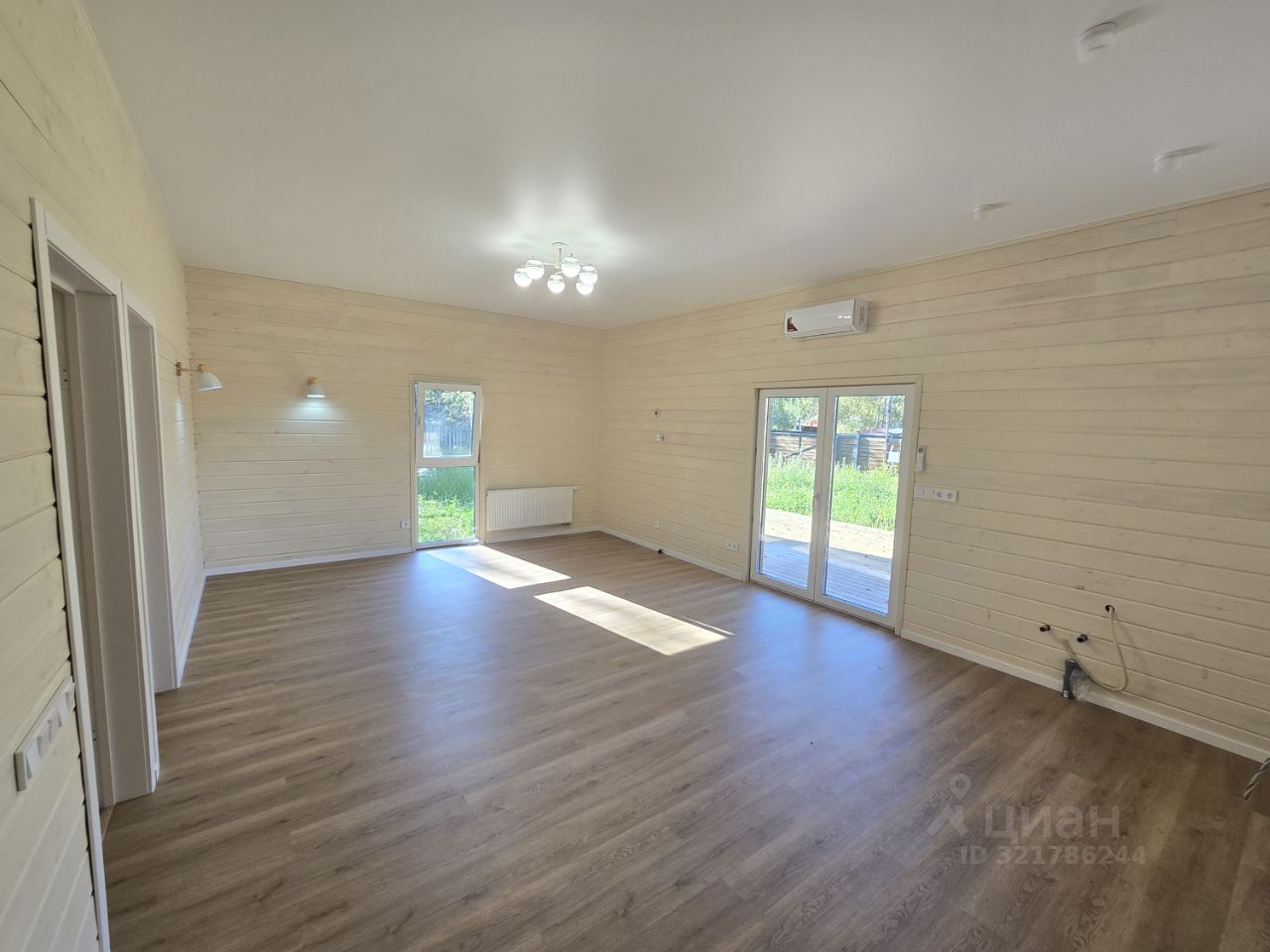 В прихожей и в санузлах на полу керамогранит, на стенах санузлов плитка, в остальных помещениях на полу кварц винил, на стенах имитация бруса.