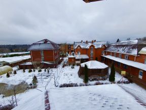 Сердцем усадьбы является основной корпус площадью 551 кв.м. Здесь, на первом этаже, расположилась огромная кухня, кабинет для уединенной работы и просторные залы, наполненные светом и воздухом. Второй и третий этажи предлагают гостям и домочадцам 12 уютных номеров, оборудованных для комфортного отдыха, по шесть на каждом этаже.