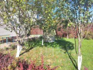 Дом из бруса, утеплитель, сайдинг, площадь 147,7 кв. м. Два этажа с четырьмя спальнями, на участке 6 сотки.