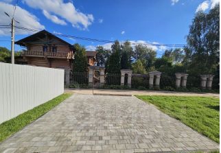 Участок (6 сот.) огорожен забором из металлического листа(2 м), выполнена отмостка и укладка брусчатки по периметру дома, в парковочной и пешеходных зонах.
