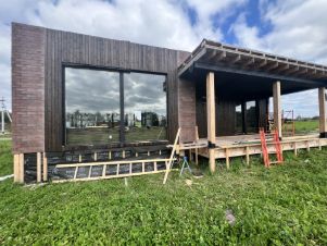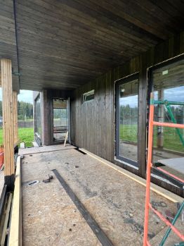 Кухня-гостиная ~43 м² с панорамным остеклением и выходом на крыльцe-террасу ~21,6 м².