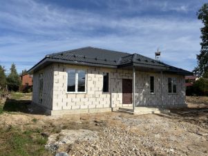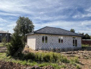 Стены из газоблока, фундамент ж/б плита 350мм,, кровля металлочерепица GrandLine, окна 70 пятикамерные VEKA. Строил себе, построено качественно.