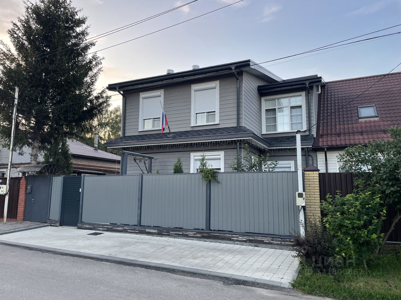 Придомовая территория и парковка на 2 авто выложены тротуарной плиткой, релакс-зона на террасной доске (ДПК).