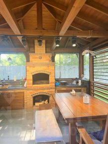 Есть хозяйственная постройка и большая современная беседка с зоной барбекю.