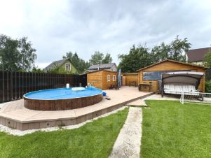 Выполнен ландшафтный дизайн. Организован дренаж с выводом дренажных вод в колодец. Распределенный автоматический полив газона, клумб, грядок и всех насаждений. На участке высажены малина, голубика, жимолость, плодовые и декоративные деревья.