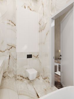 2. Мастер-спальня Роскоши: Ваш личный оазис с выходом на террасу, собственным санузлом, ванной у панорамного окна и большой гардеробной.